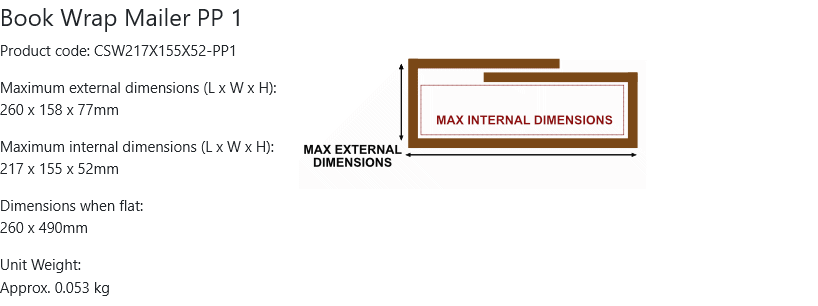 Book wrap mailer PP1, 217x155x52mm