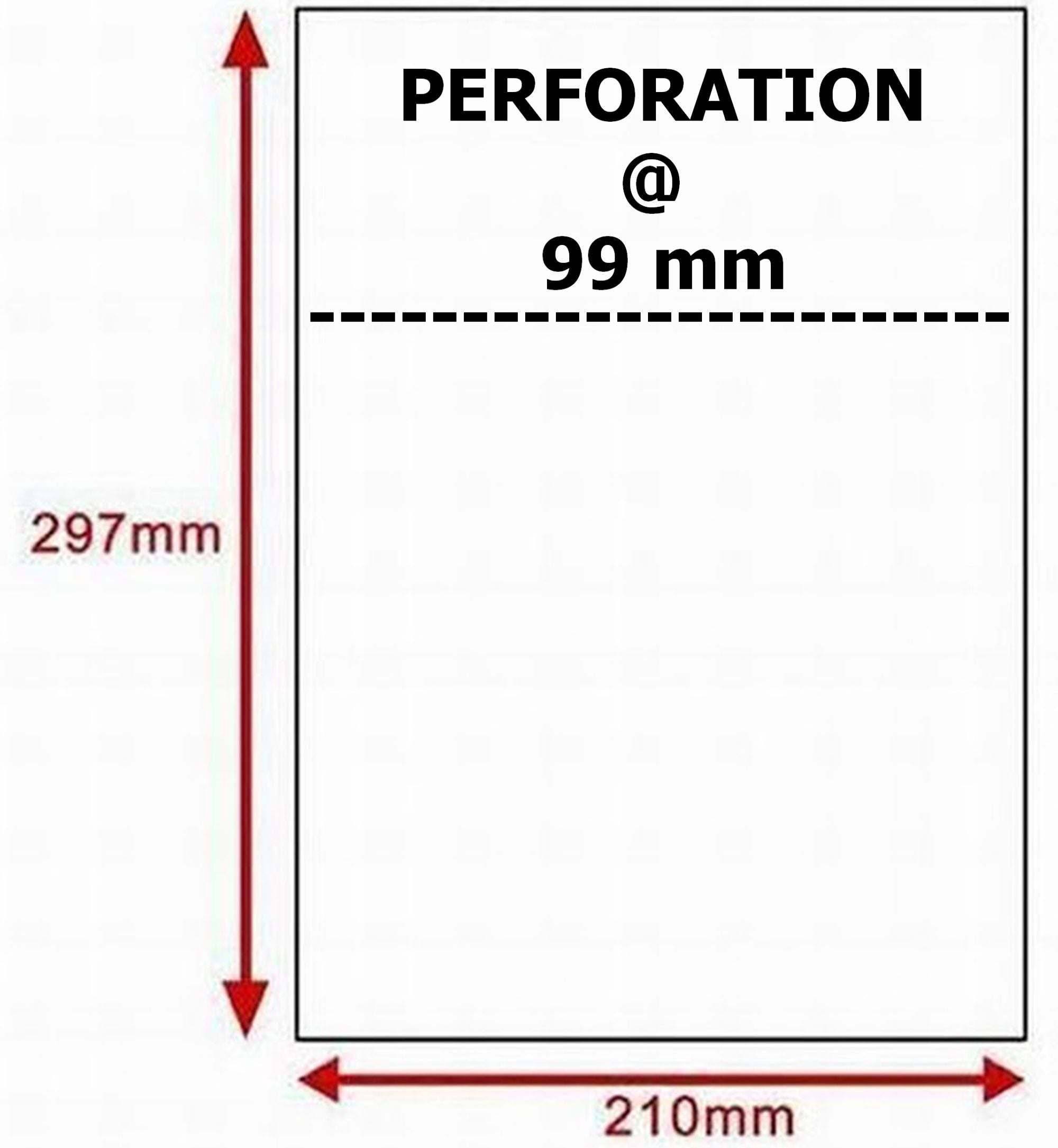 PERFORATED A4 printer copier paper 90gsm - 1 PERFORATION @ 99mm 1/3 A4 - 500 is backordered and will ship as soon as it is back in stock.